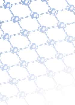 Blå forbindelser til netværket og en varm kerne, der blomstrer ved udveksling. Figuren kan stå for sig selv og sammen med flere figurer, hvorved der skabes et net...